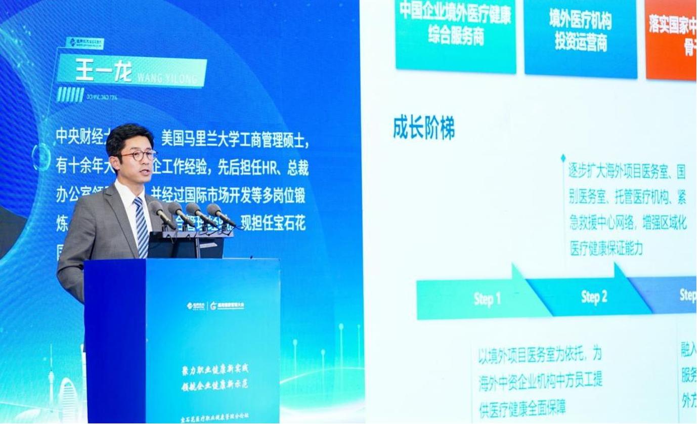 王一龍介紹了寶石花醫療作為央企醫療平臺企業,在保障中國企業駐海外員工醫療健康,持續輸出中國醫療技術、標準、品牌等方面的具體實踐以及取得的成績。