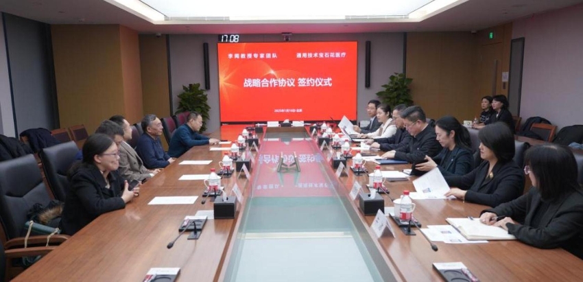 1月16日下午,通用技術寶石花醫療與李聞教授團隊簽署戰略合作協議。寶石花醫療黨委書記、董事長王旸,總會計師牟東平,李聞教授及團隊出席簽約儀式。
